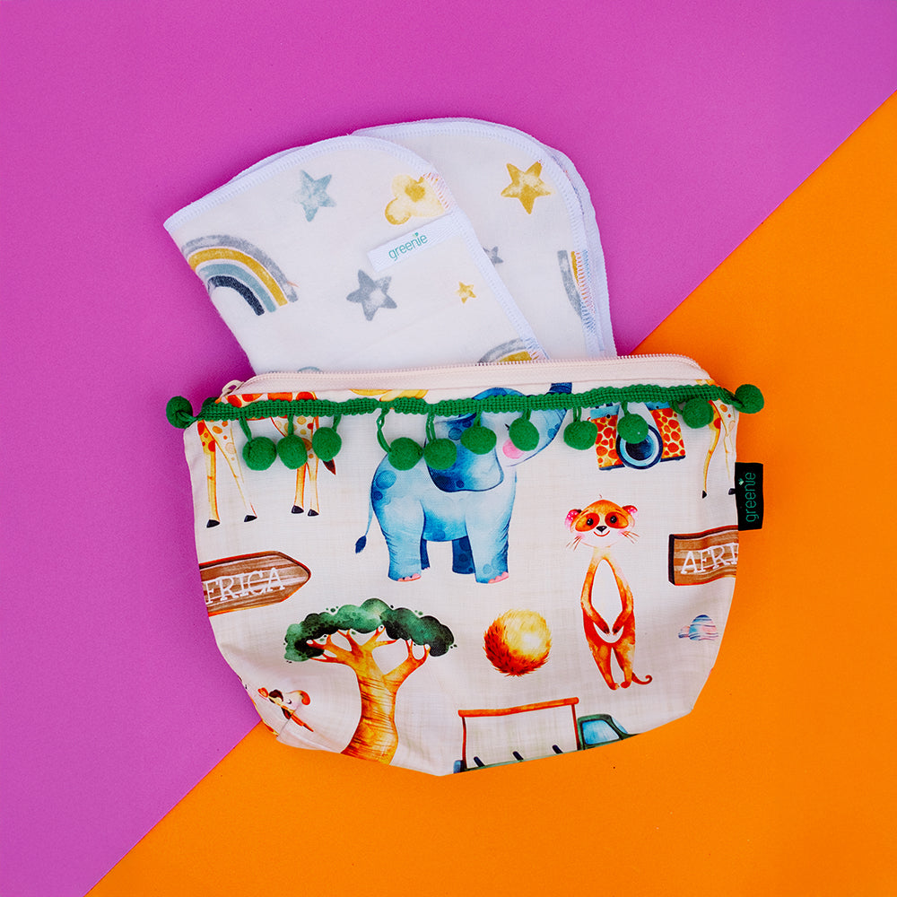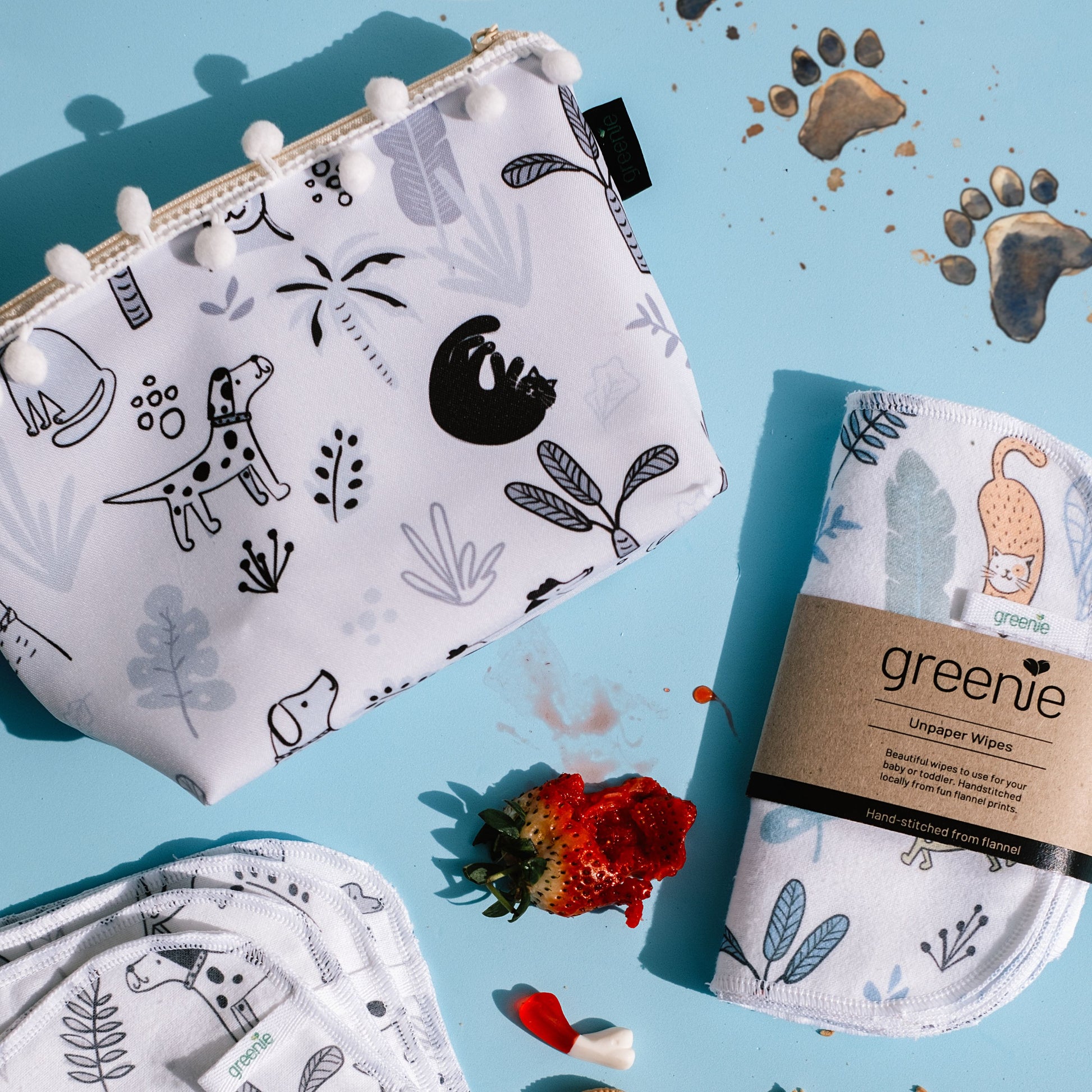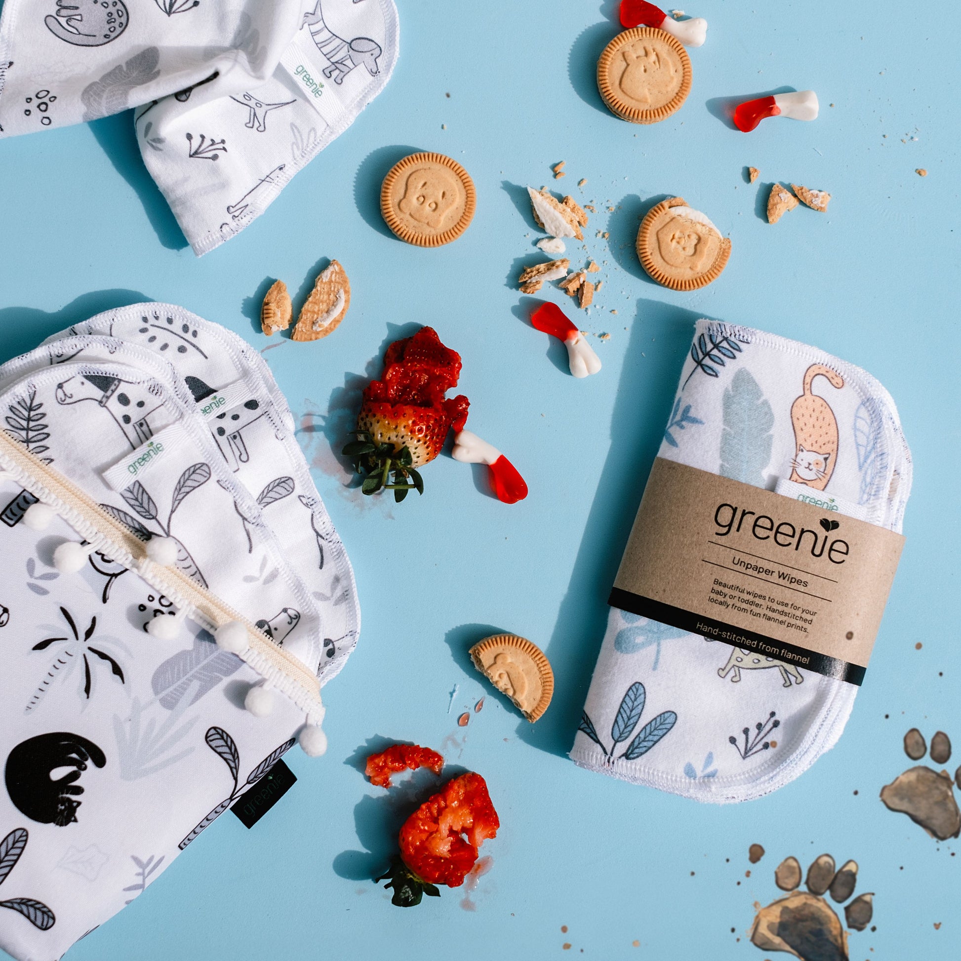 Say hello to the Greenie Bum Bag – a toiletry bag created for little ones. The perfect, quirky solution for keeping your wipes and toiletries organised! This waterproof pouch features a clever separator lining, allowing parents to store clean and used Greenie Unpaper Babywipes separately with ease. Whether you’re on the go with a little one or need a stylish pouch for older kids, the Greenie Bum Bag has you covered. Its fun design is made to be as practical as it is playful – helping you stay organised while adding a pop of personality to your diaper bag or travel kit.