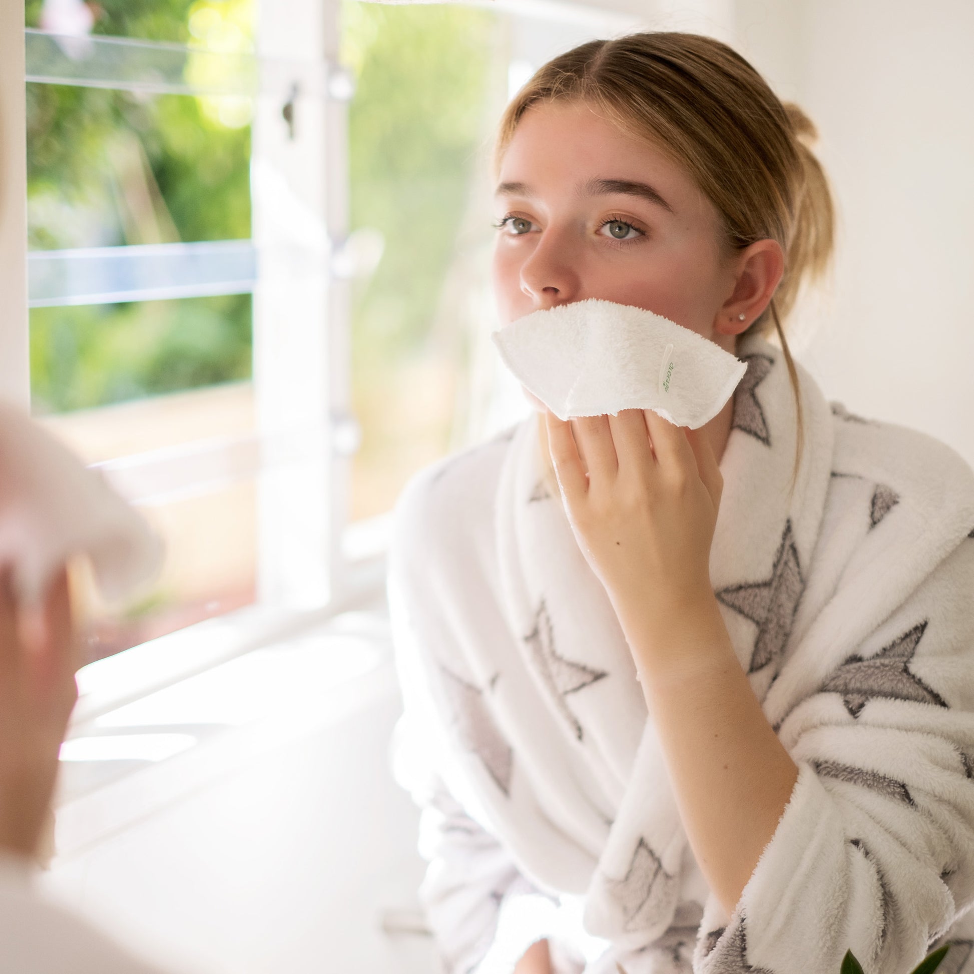 Use it to remove make-up and cleanse your skin without the need for expensive, chemically ridden skincare products. Wash your face rounds in warm water with soap until there is no make-up or residue on it. Allow to dry thoroughly to reduce the chance of bacteria forming.Share